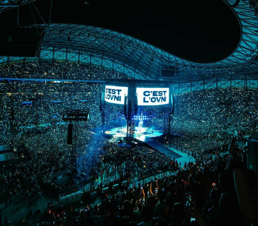 3 massive concerts: a record-setting Stade de France (97,816 fans) and 2 packed Orange Vélodrome shows.